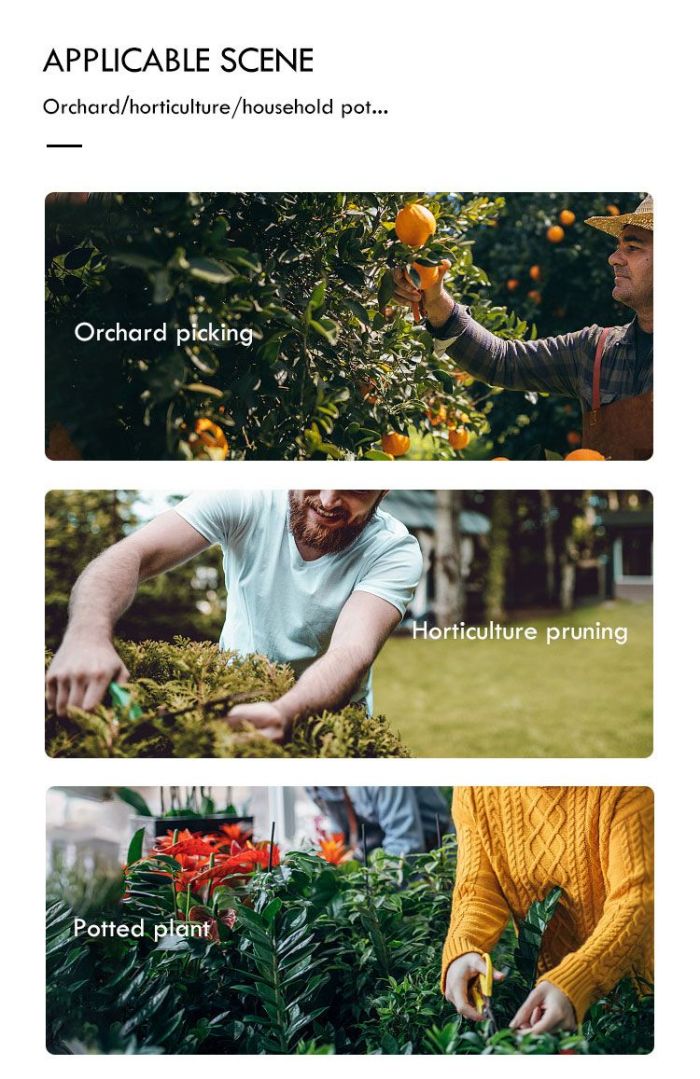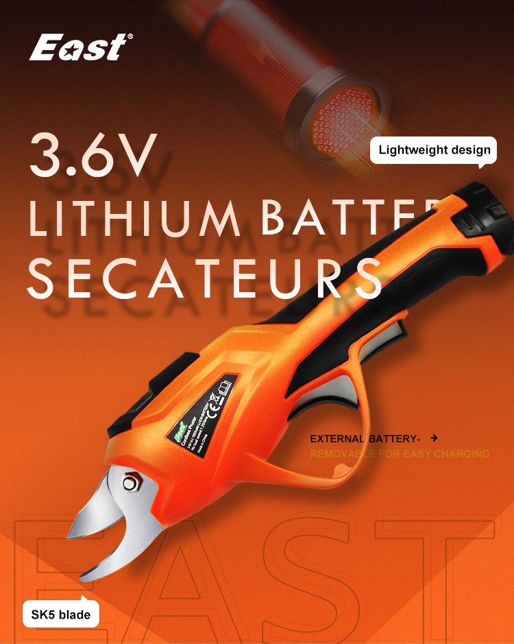 【What You Get】Secateurs*1; Protective shell*1; Lithium battery*1; Charge*1