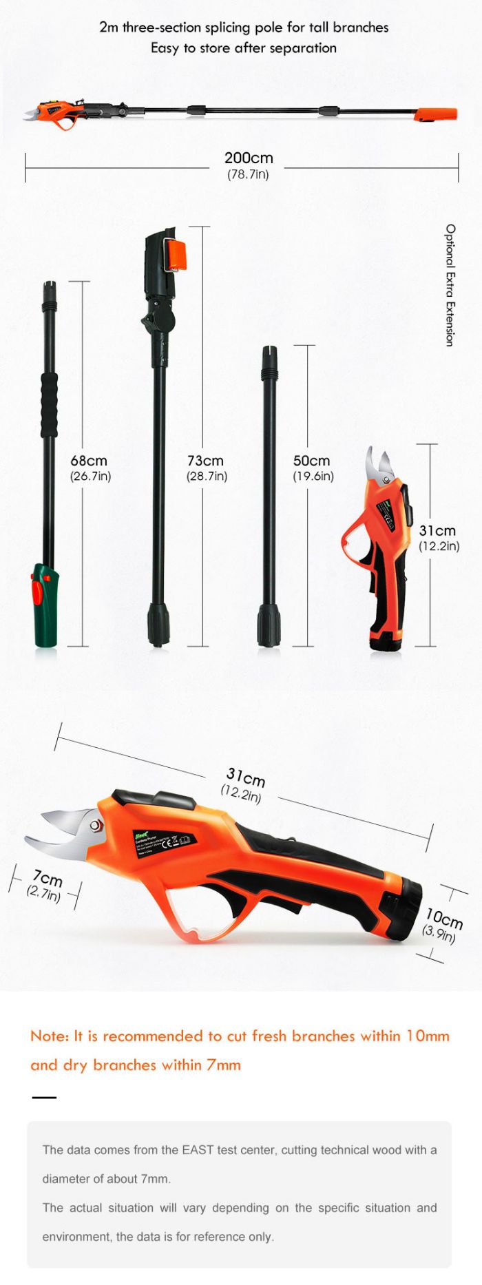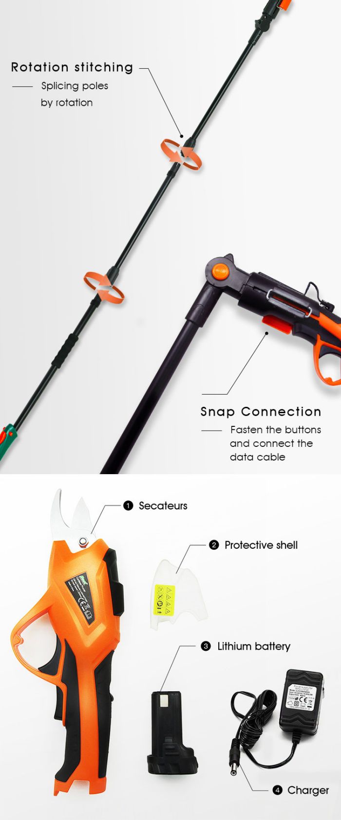 3.6V Lithium Battery Cordless Electric Garden Secateurs With Long Pole