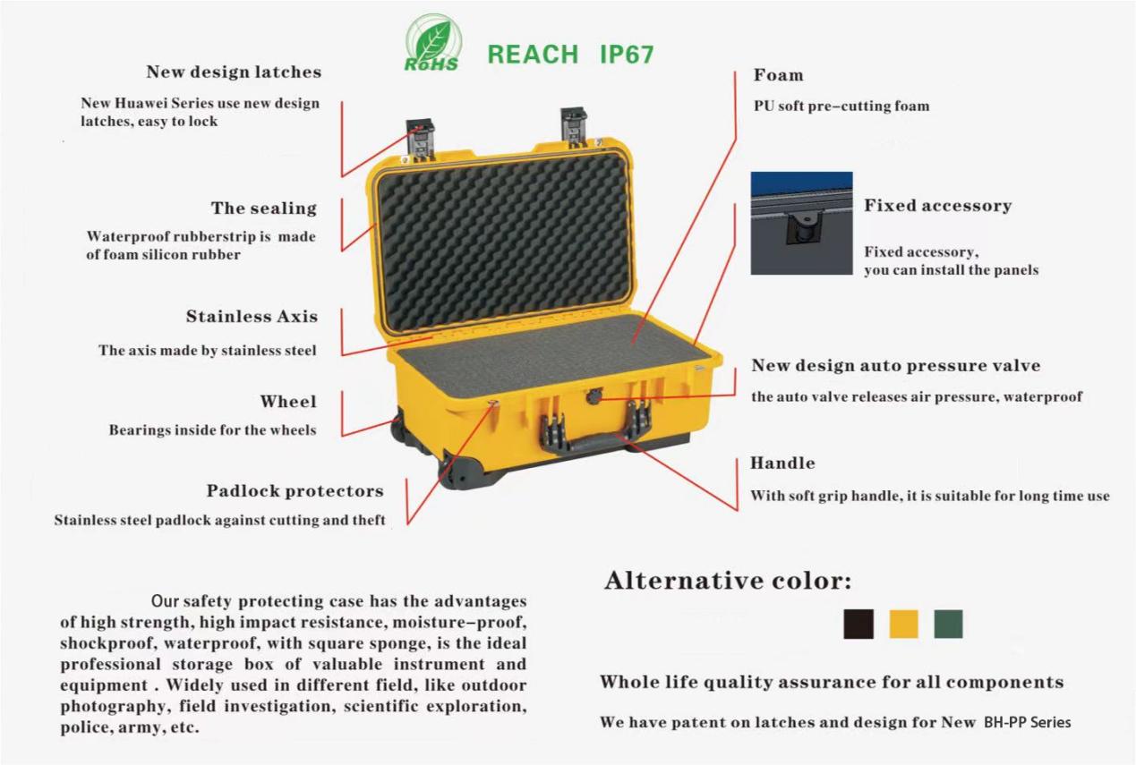 BH-SZ3309 Solid&Portable Waterproof Gun Box, Single Handgun/Pistol Case With Buckles And Strap For The Transportation And Preservation Of Gun