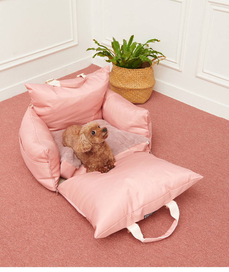 Warm Durable Material - Our dog car carrier is filled with great PP cotton, more thick and soft than others, and the surface is high-quality and delicate fluff, which provides a comfortable sleeping surface for the dog and also protects the dog’s joints! The exterior uses waterproof Oxford cloth, the stitching is very firm, and it is durable, waterproof and scratch resistant!