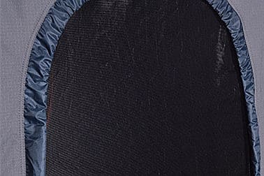 Large front opening with half mesh screen, large back window, 2 side windows. All models come with zippered attached black out window coverings that can be opened for great views or closed for privacy.