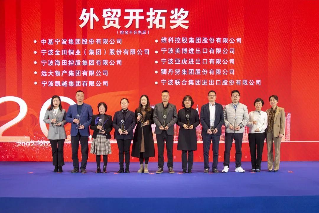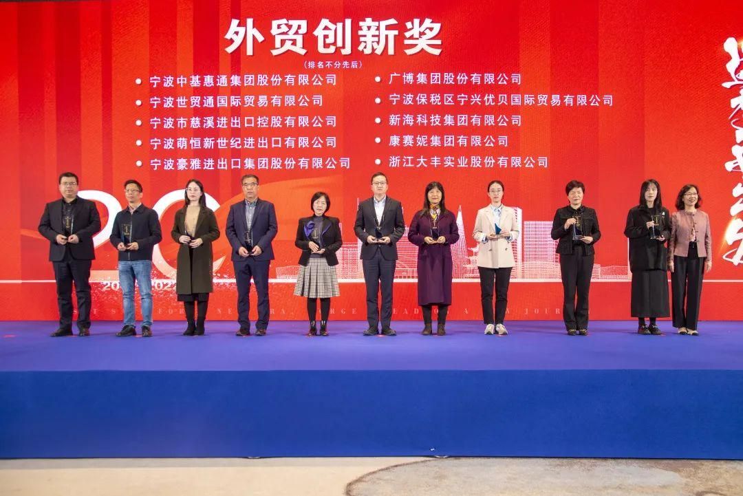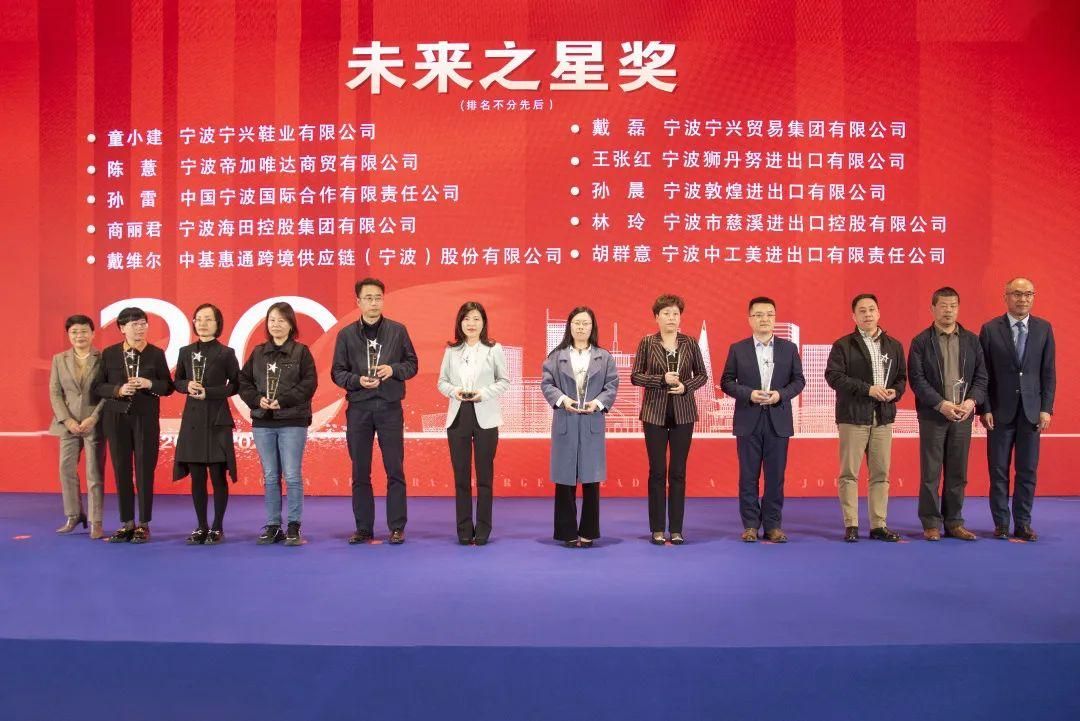 The event honored outstanding enterprises and individuals in Ningbo’s foreign trade industry and awarded a series of advanced awards. China Base Group won the “Foreign Trade Development Award”, China Base Huitong won the “Foreign Trade Innovation Award”; Chairman Zhou Jule and Vice President Ying Xiuzhen won the “Lifetime Achievement Award”, Zhao Yuanming and Shi Xuezhe won the “Outstanding Contribution Award”, and Dai Weier won the “Future Star Award”.