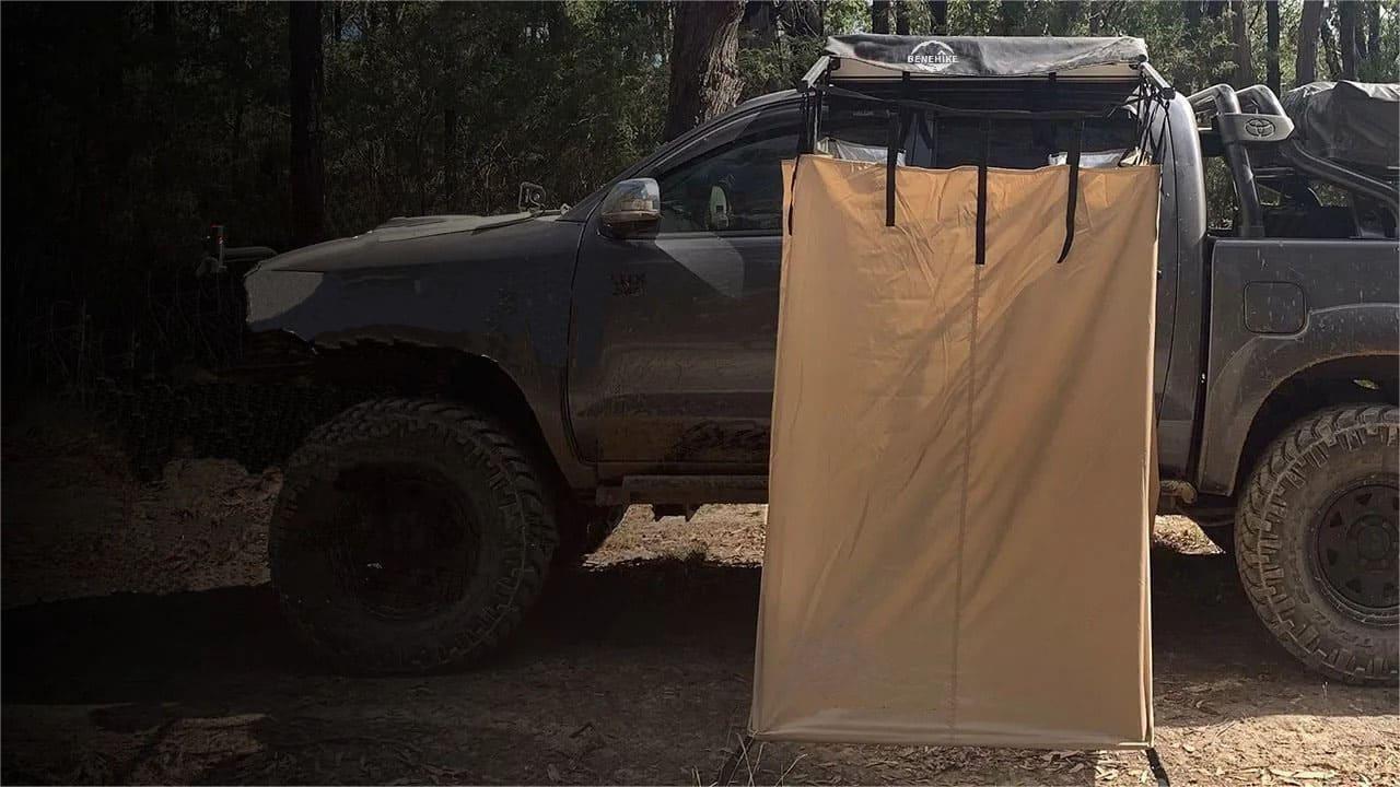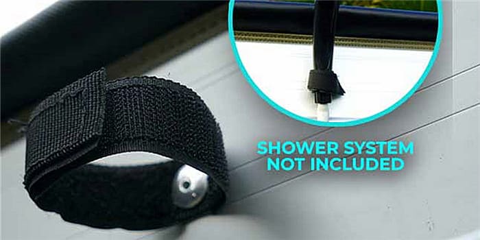 • Adjustable straps around the upper half of the shower fabric allows great adjustability depending on vehicle height