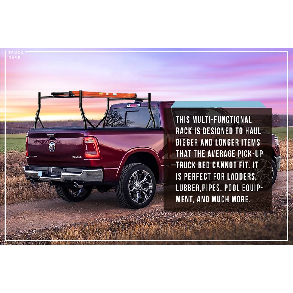 Universal fit: The extendable top crossbar can be adjusted from 5ft to 7ft makes it compatible with most of the pickup trucks on the market. Maximum height: 27 inches off the truck's bed.